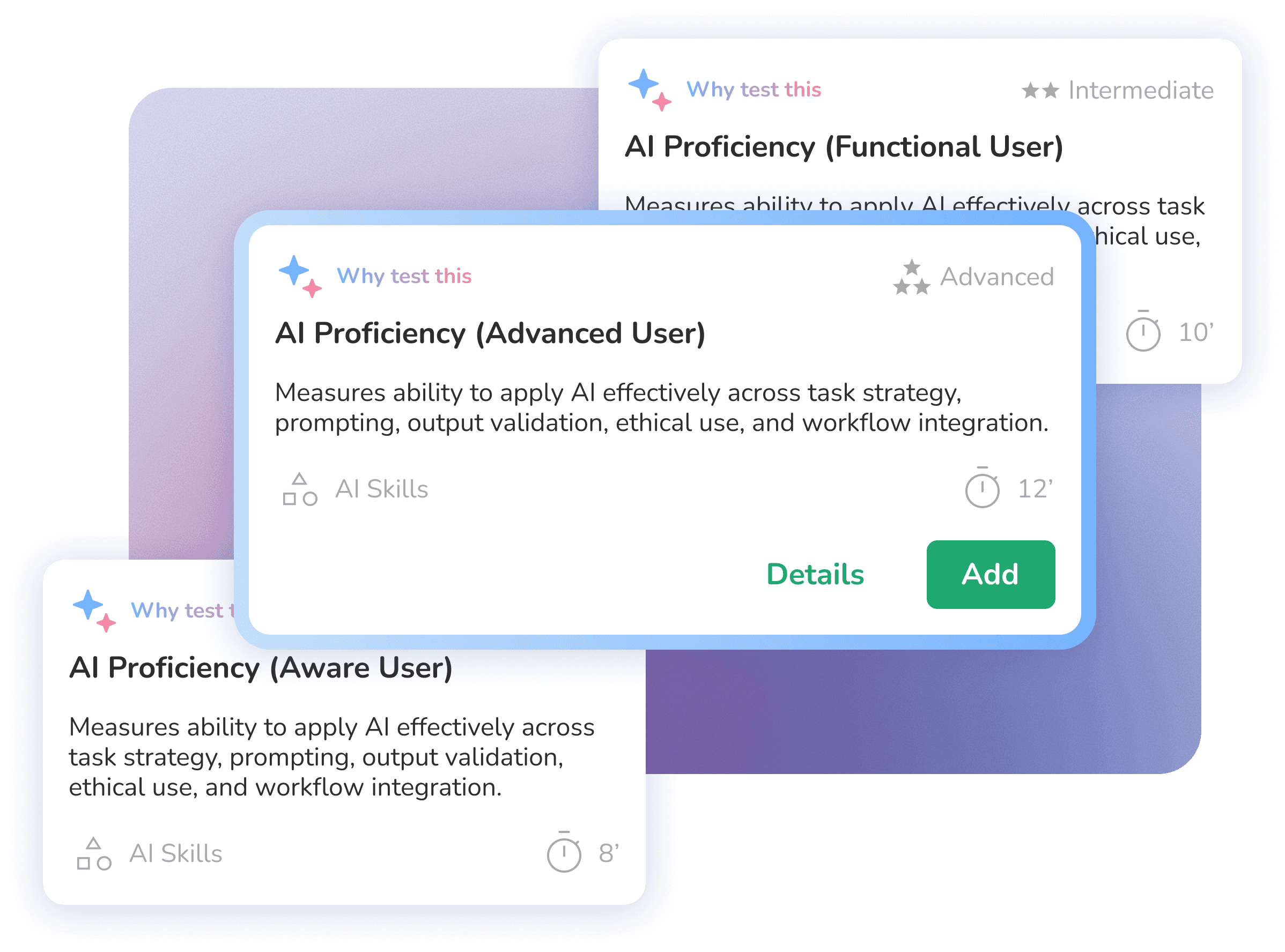The market is full of AI assessments. Most test what candidates know about AI. We measure what they can actually do with it.