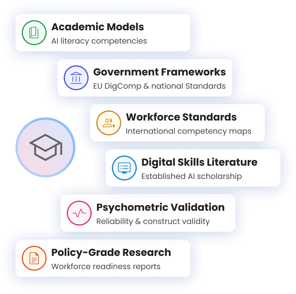 The result: a measurement instrument built on the most rigorous AI proficiency research available, validated through established psychometric methods.
