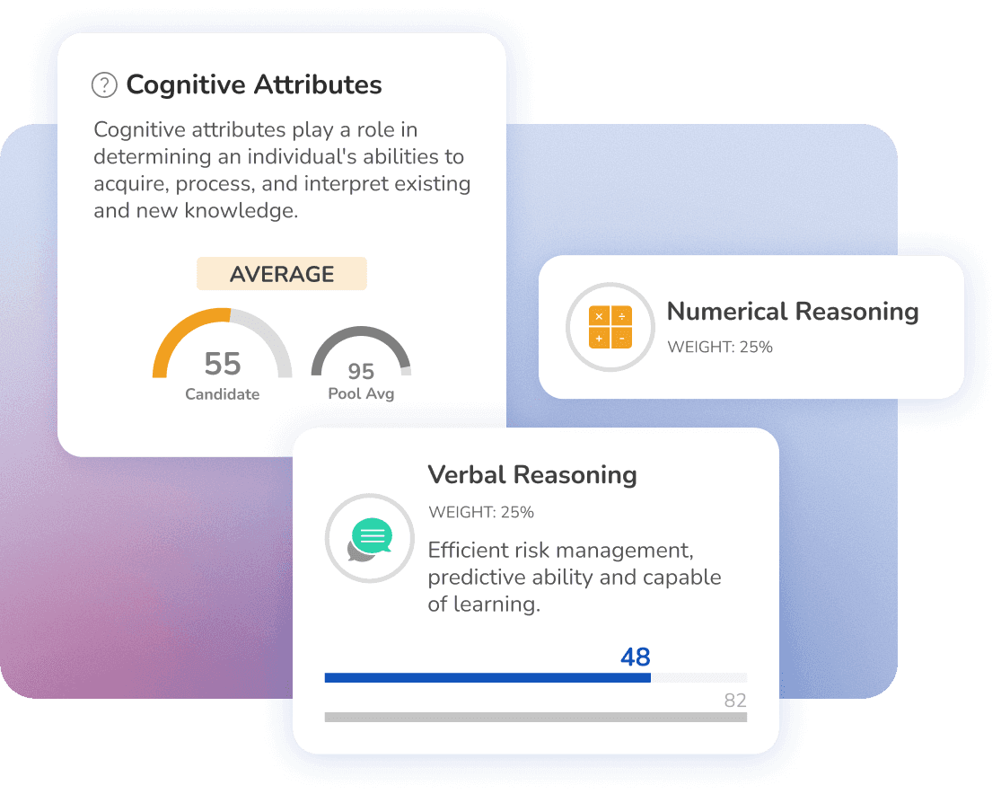 Get a clear, visual breakdown of each candidate’s cognitive strengths, aligned to the role and benchmarked against your talent poll.